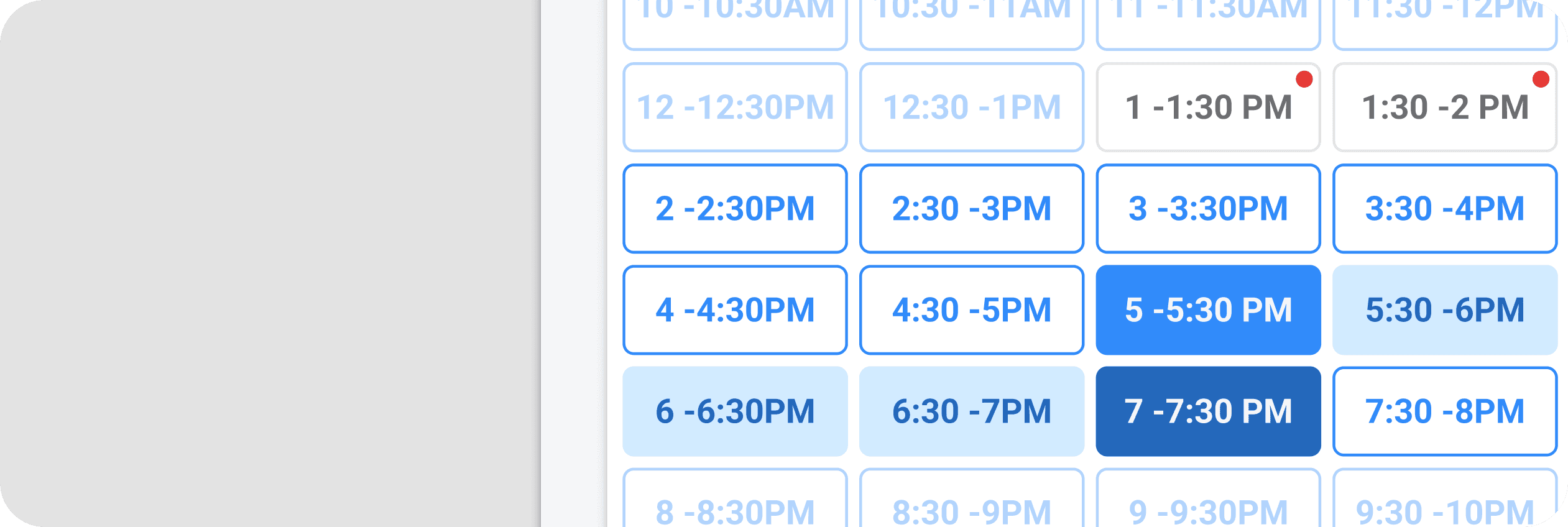 Added clear indicators for fully booked, unavailable, and guest-compatible time slots.